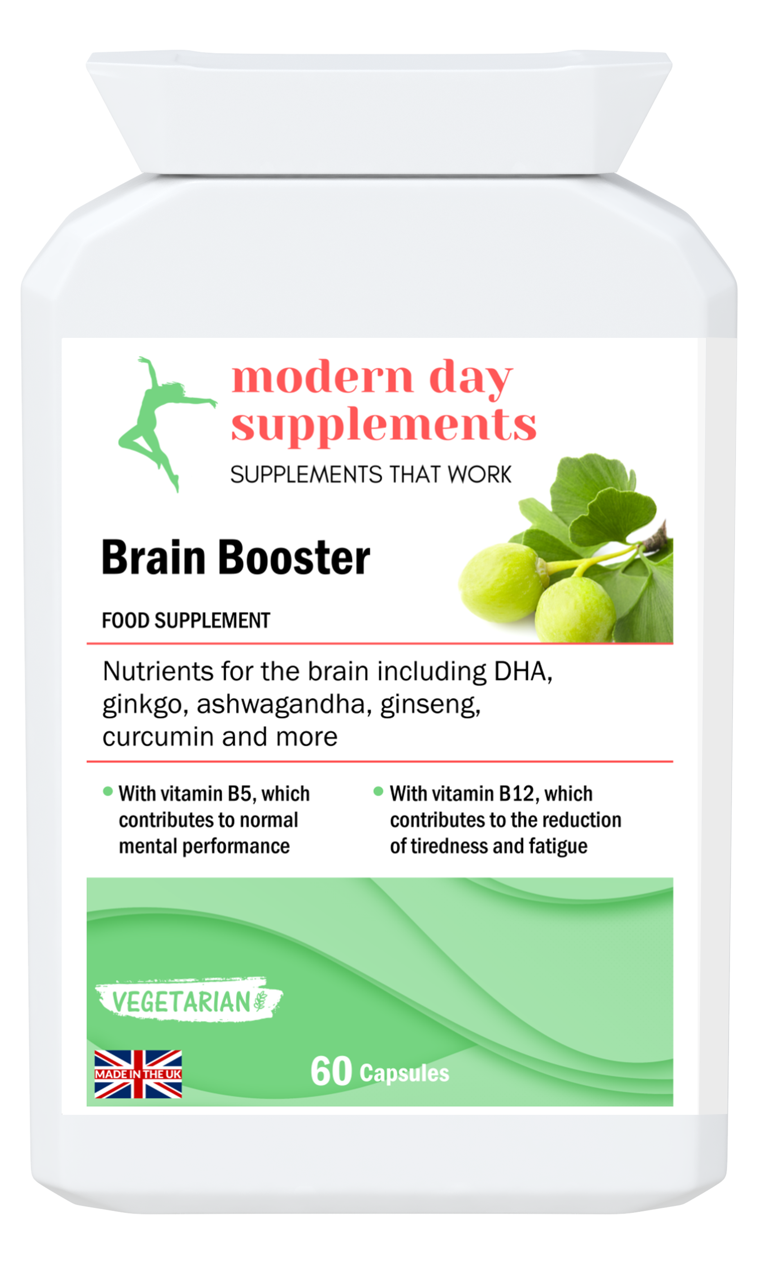 ‘Brain Booster’ from ‘Modern Day Supplements‘ is a mental performance brain supplement including energy and immunity support. It is a super-rich food supplement for the brain. This stand alone and extensive formula contains a specialised collection. They are herbs, vitamins and minerals that support both brain action and energy level. They give high regarded additional nutritional energy to your brain and body. The ingredients in ‘Brain Booster’ are backed up by science.
